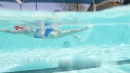 但是如果你想游得更快一些,追求更高的速度,你就要学会在转动肩膀的同时稳定你的胯部。